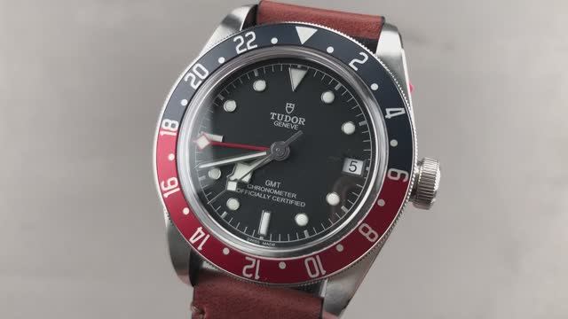 *перевести видео можно в Яндекс браузере Корпус часов Tudor Black Bay GMT 79830RB диаметром 41 мм выполнен из нержавеющей стали, сине-красный безель "Pepsi" обрамляет черный циферблат на коричневом ремешке из телячьей кожи. Часы Tudor Black Bay GMT оснащены такими функциями, как часы, минуты, секунды, дата и время по Гринвичу. Толщина этих часов Tudor 79830RB-0002 также составляет 14,6 мм, а расстояние от выступа до выступа составляет 50,2 мм. Для получения более подробной информации ознакомьтесь с полным обзором Tudor Black Bay GMT