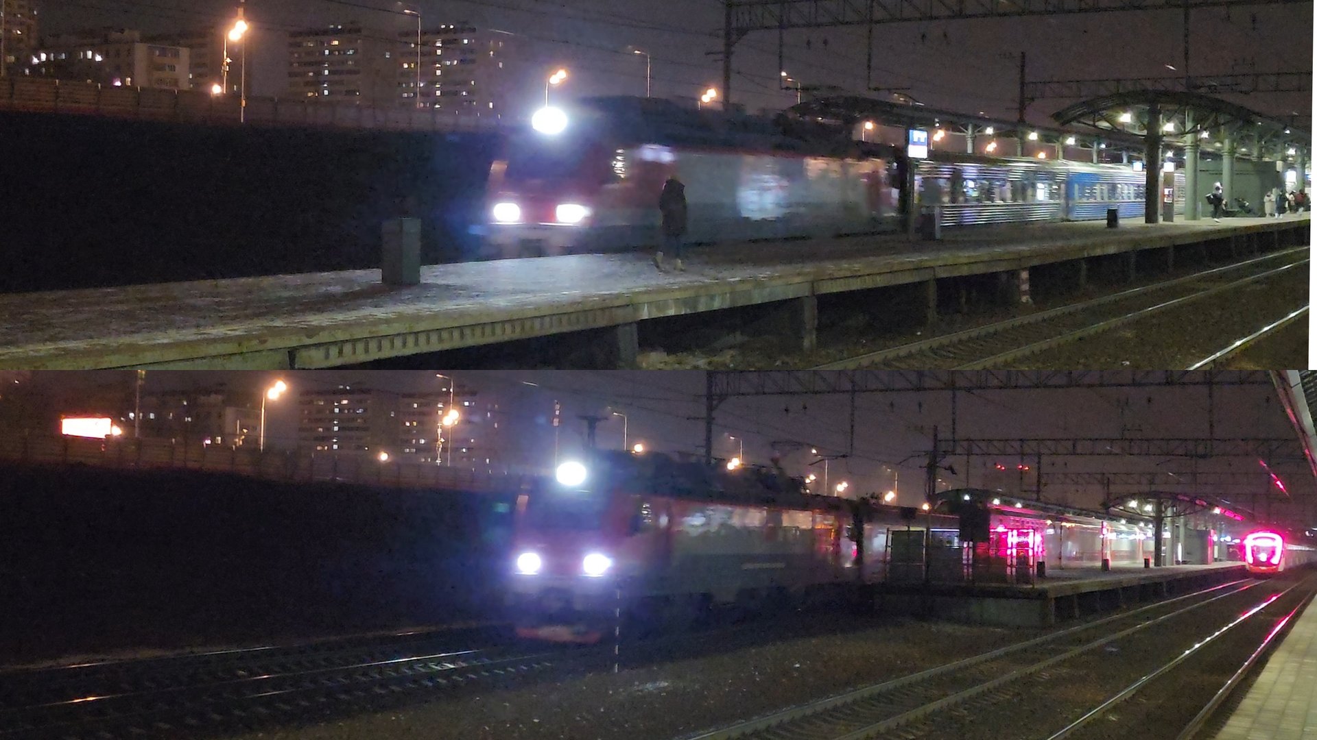 платформа Выхино перегон Люберцы-1–Перово Московская железная дорога 0:00 - ЭП20 с поездом №101 "Сочи" Адлер-Москва и ЭД4М-0278 в 22:29:57 0:46 - ЭП20 с поездом №3 "Кавказ" Кисловодск-Москва в 22:35:29 на юге, в Ростовской области, обильные снегопады, из-за которых часовые опаздания поездов, в Московсом регионе снега нет. 4 февраля 2025 года
