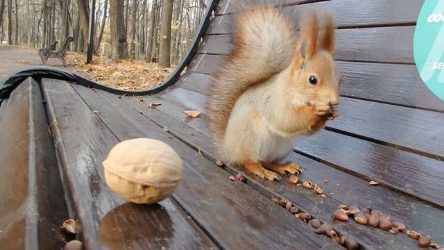 Очень трусливая и одновременно очень голодная белка