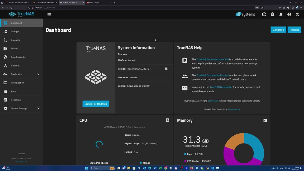Установка Truenas в Proxmox и настройка датасета под бэкапы ВМ