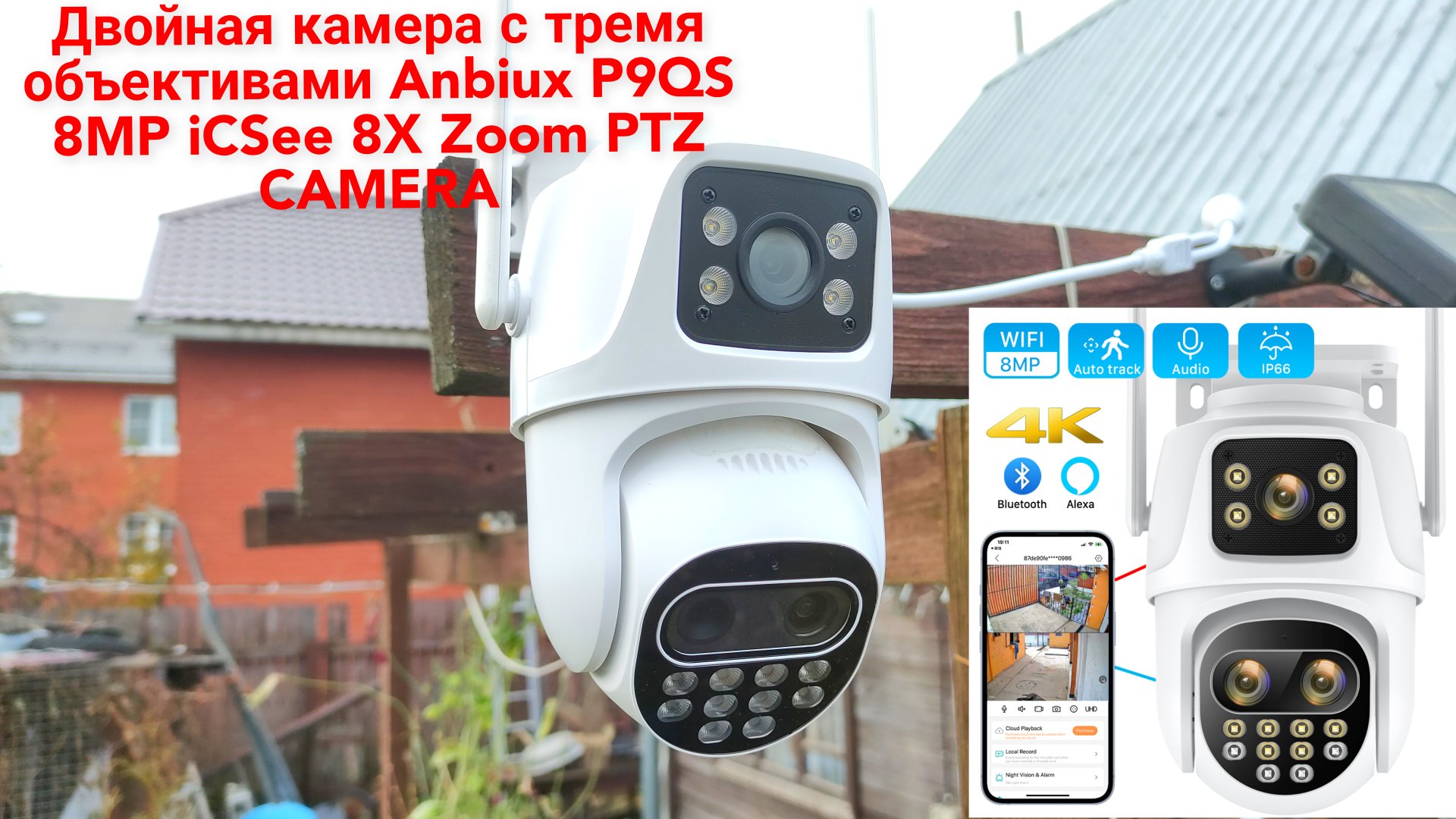 Уличная двойная камера видеонаблюдения с тремя объективами Anbiux P9QS 8MP, верхняя стационарная, нижняя поворотная с автоматическим обнаружением и отслеживанием человека с сайта aliexpress https://aliclick.shop/r/c/1s3njf0gatejpk1k?erid=2SDnjdPDLt8