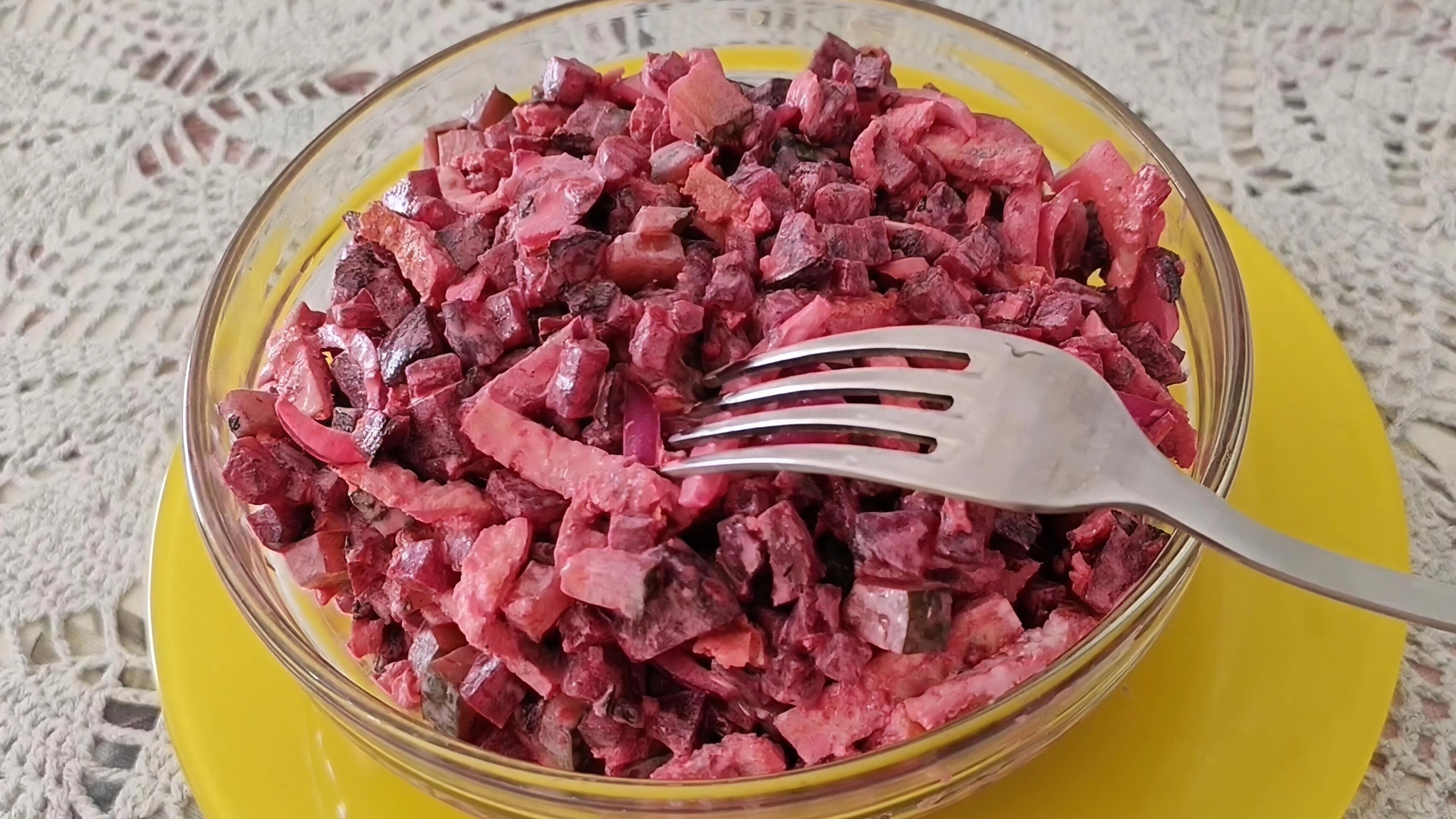 Свекольный салат с яичным блином/