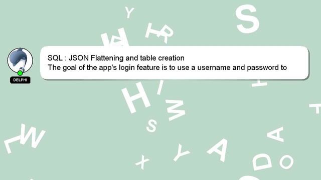 SQL : JSON Flattening and table creation To Access My Live Chat Page, On Google, Search for "hows tech developer connect" As I promised, I have a secret feature to share with you. This is a YouTube's feature which works on Desktop. First, Make sure the video is currently in playing mode. After that, type the word 'awesome' on your keyboard. It will change your youtube progress bar into a flashing rainbow. A little intro about me, Hello everyone, I'm Delphi. I am happy to help you with your questions. SQL : JSON Flattening and table creation Let me know if you have more specific queries by commenting or chatting with me. If you have additional information or an answer to contribute, please feel free to comment below. Your answer will be recognized and appreciated, and I will 'heart' it to show my appreciation. : Flattening SQL and JSON table creation