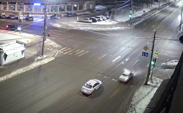 Авария на перекрестке Ленинградская — Кирова в Вологде. Автомобиль такси остановился на светофоре и включил «аварийку». Водитель двигавшегося позади автомобиля в последний момент увидел препятствие на дороге и попытался машину объехать, но не справился с управлением и врезался в ограждение.