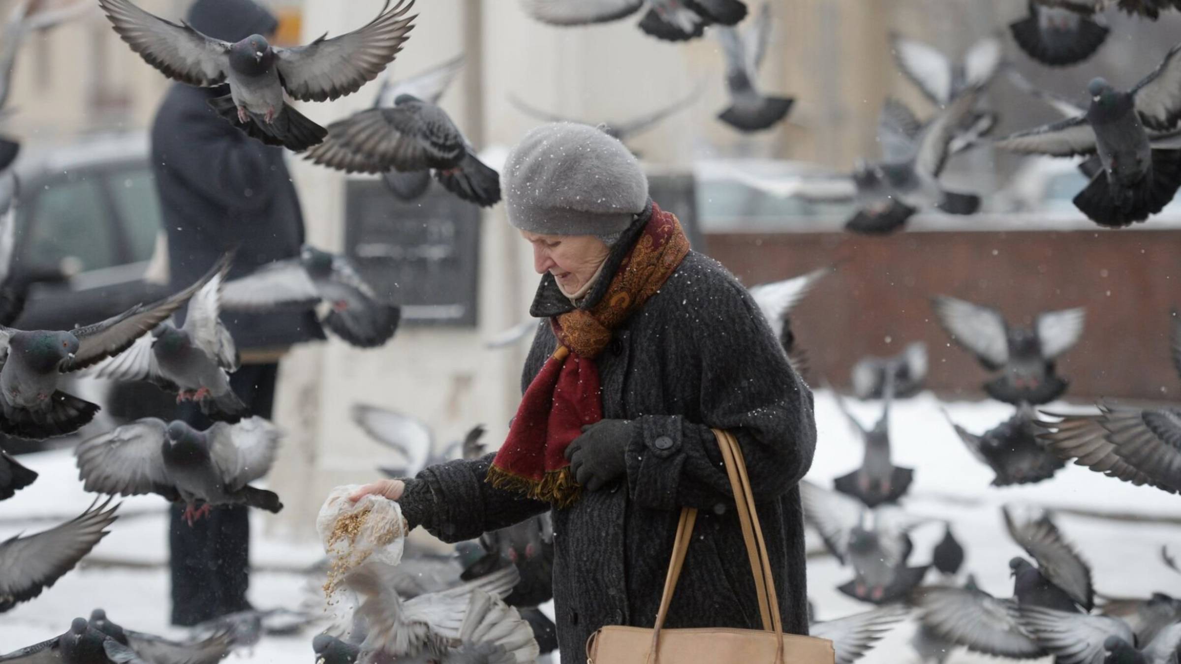 Старушка кормит голубей