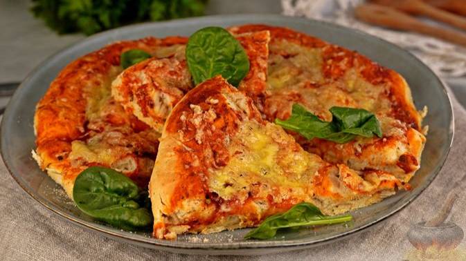 Благодаря добавлению пряных трав и в тесто, и в томатный соус пицца получается очень ароматной. Начинка - тёртый сыр - отличный вариант для любителей минимализма. #ДрожжевоеТесто #НесладкаяВыпечка