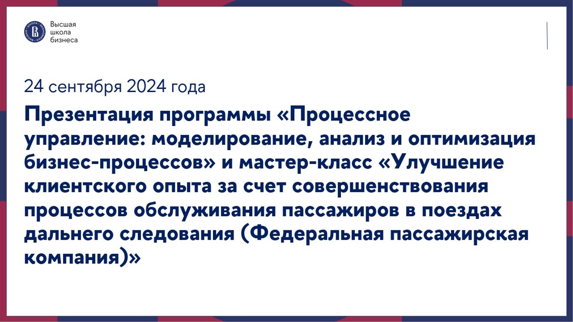 Презентация программы «Процессное управление» и мастер-класс 24 сентября 2024 года
