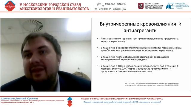 Больной с аниагрегнтной терапией в ОРИТ Щекочихин ДЮ 2020