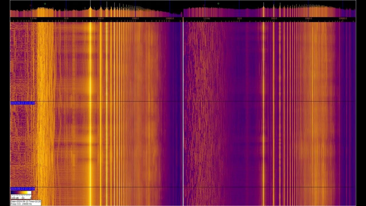 The left and right signals are taken from inductive sensors with ferromagnetic elements, but the left one is additionally connected to grounding on 2 stainless steel pins buried 1 m and spaced 1 m apart. You can see a large number of harmonics from the power supply and various artificial signals. Of interest are signals at frequencies below 50 Hz, where you can observe the operation of specialized equipment and communication signals of submarines and underground objects. Separately, it is worth considering signals in the region of 1-3 Hz on the left spectrum, which relate to the geomagnetic background, which is modulated by solar activity, They can be viewed in more detail in the video called “Signals from the Earth,” which are in the playlists below. The sound in the video is recorded in real time - a signal from sensors. О ПРОИСХОЖДЕНИИ ЧАСТОТНОЙ МОДУЛЯЦИИ СЕРПЕНТИННОЙ ЭМИССИИ https://youtu.be/bwWHggY1IVU?si=xAX1diRKI9MxQJ88&t=1740 Previous monitoring is in playlists: EMF monitor https://youtube.com/playlist?list=PLiRg2YCbXcwn41BHqADKVBep_TgVq6XUN Очень Низкая Частота ~ Very Low Frequency https://youtube.com/playlist?list=PLiRg2YCbXcwnp5DxM4PnSs7k_Rnypaqek SIGNALS IN THE GROUND https://youtube.com/playlist?list=PLiRg2YCbXcwl6f3Bf5arHbGSOCNE5U71O поддержать канал: 8-999-654-93-44