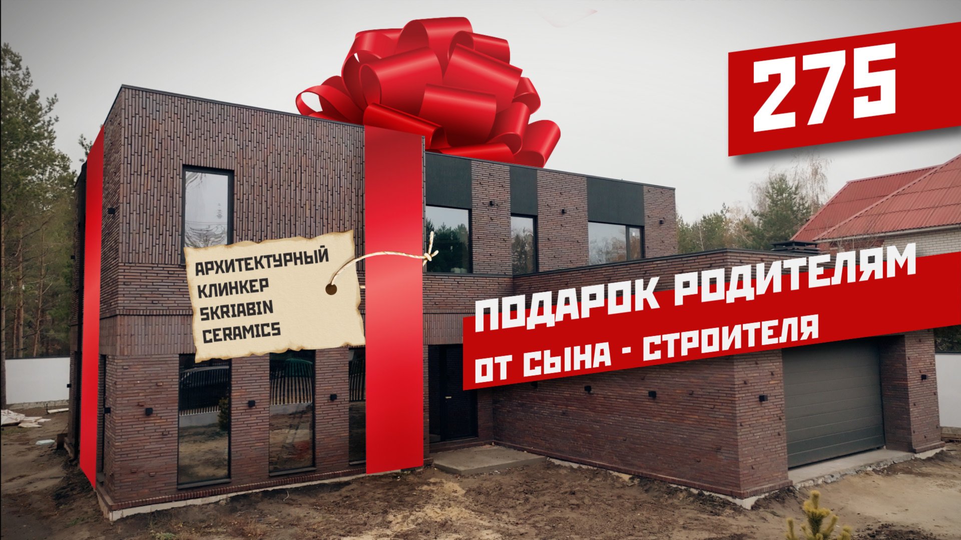 Дом из архитектурного клинкера skriabin ceramics со вторым светом и огромными окнами
