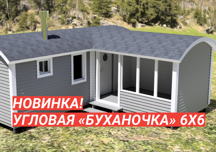 Новый проект: угловая баня «Буханочка» 6х6 с террасой