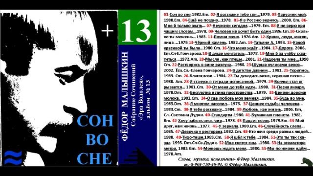 Сон во сне 1982г. Слова, музыка, исполнение- Федор Малышкин. Из Полного Собрания Сочинений «Мой Путь и Жизнь Среди Людей». Финансовая поддержка принимается на номер телефона +7-904-750-40-93. Избранные имеют возможность личного общения. Электронная почта malishkin@list.ru