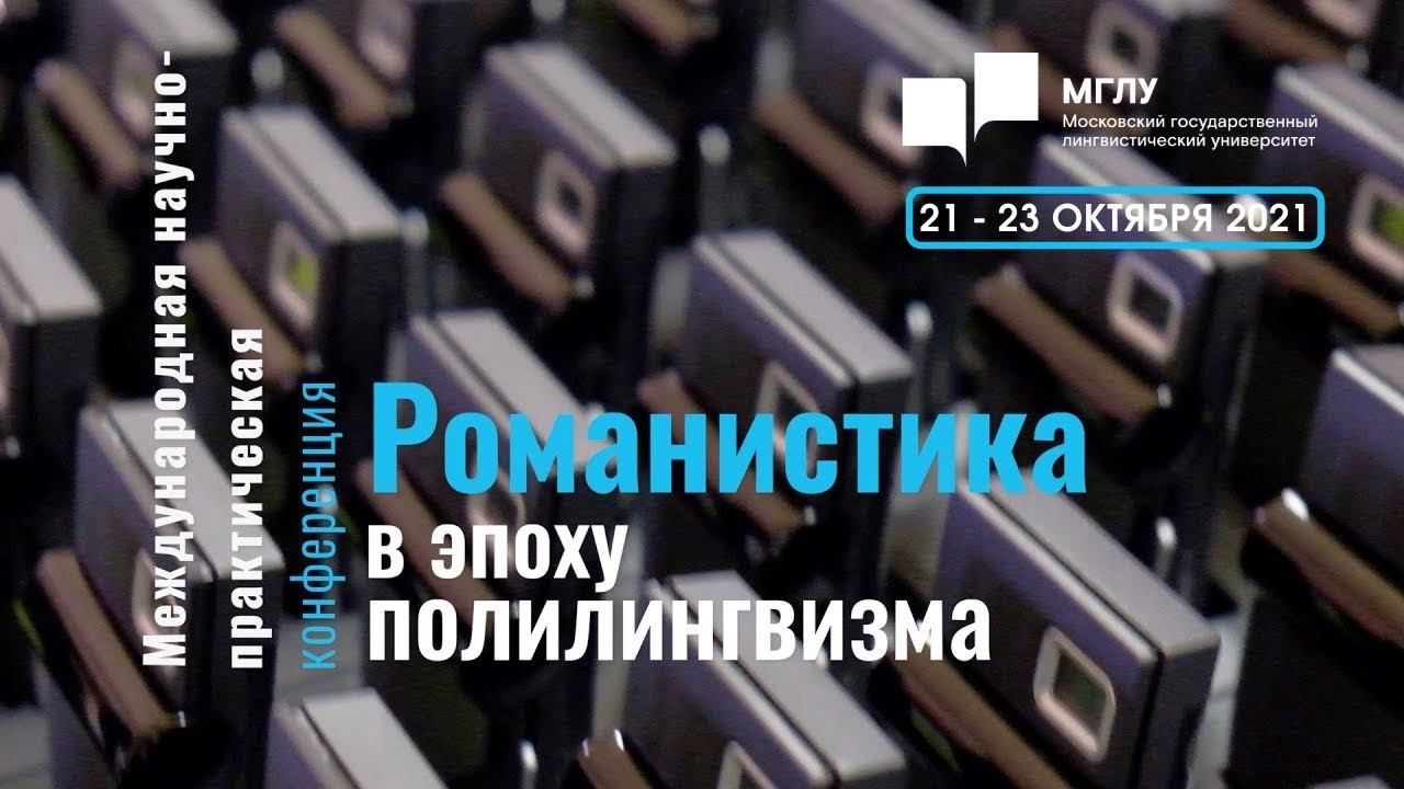 https://linguanet.ru/ob-universitete/meropriyatiya/?ELEMENT_ID=9525 Программа https://linguanet.ru/upload/medialibrary/9ec/f2lnzdgum8aqik8djlu6is5iyop7kq2y.pdf С 21 по 23 октября 2021 г. в МГЛУ прошла V Международная научно-практическая конференция «Романистика в эпоху полилингвизма». Конференция направлена на популяризацию научных исследований в области французского языка и романской лингвистики, укрепление партнерских отношений с российскими и зарубежными учеными-романистами, а также привлечение внимания молодых исследователей к данной проблематике. 0:40 приветственное слово ректора МГЛУ И.А Краевой 5:46 видеообращение Чрезвычайного и Полномочного посла Франции в РФ Пьера Леви 8:55 приветственное слово проректора по проектной деятельности и молодежной политике МГЛУ И.А. Гусейновой 14:21 приветственное слово Чрезвычайного и Полномочного псла Аргентинской Республики в РФ Эдуардо Антонио Зуаина 16:06 приветственное слово временного поверенного в делах Посольства Республики Молдова в РФ Серджиу Гончеренко 19:39 приветственное слово декана факультета французского языка МГЛУ Ю. Н. Сдобновой 45:24 Бондарев А.П. «Модернизм (М. Пруст), экзистенциализм (Ж.-П. Сартр), постмодернизм (М. Уэльбек) – историческая закономерность эволюции художественного сознания» 1:27:58 Далецкий Ч.Б. «Межкультурный дискурс семиометрии в построманском пространстве» 1:48:25 Bordet Yves, Olejak Perhann «Présentation et lancement de l’application doxilog® pour le français»