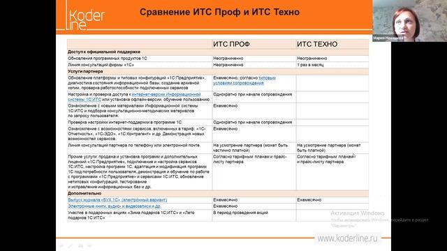 Компания «Кодерлайн» провела вебинар «ИТС и сервисы – используй на все 100» Ведущая: Ненашева Мария Андреевна - эксперт в области ЭЦП и ЭДО Целевая аудитория Специалисты и руководители IT служб, бухгалтерии. Описание Цель вебинара - раскрыть понятия договора ИТС, донести полное описание возможностей, входящих в договор ИТС без дополнительных оплат. Зачастую организация не использует большую часть возможностей, которые включены в договор ИТС, фактически нуждаясь в их функциональности. В результате компания переплачивает лишние деньги, тратит время на внедрение и содержание внешних средств автоматизации. В ходе вебинара будут подробно рассмотрены все услуги и сервис, входящие в договор ИТС. Программа 1. В каких случаях требуется договор ИТС. 2. Понятие и виды договоров ИТС. 3. Услуги, входящие в состав договора ИТС. 4. Сервисы 1С, входящие в состав договора ИТС.