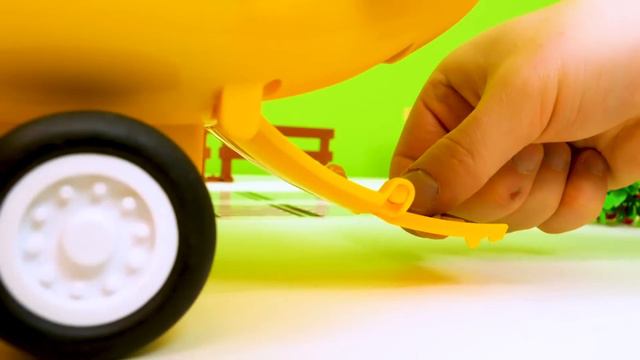 El avión transporta los coches y camiones para niños. Vídeos de tractores de juguete.