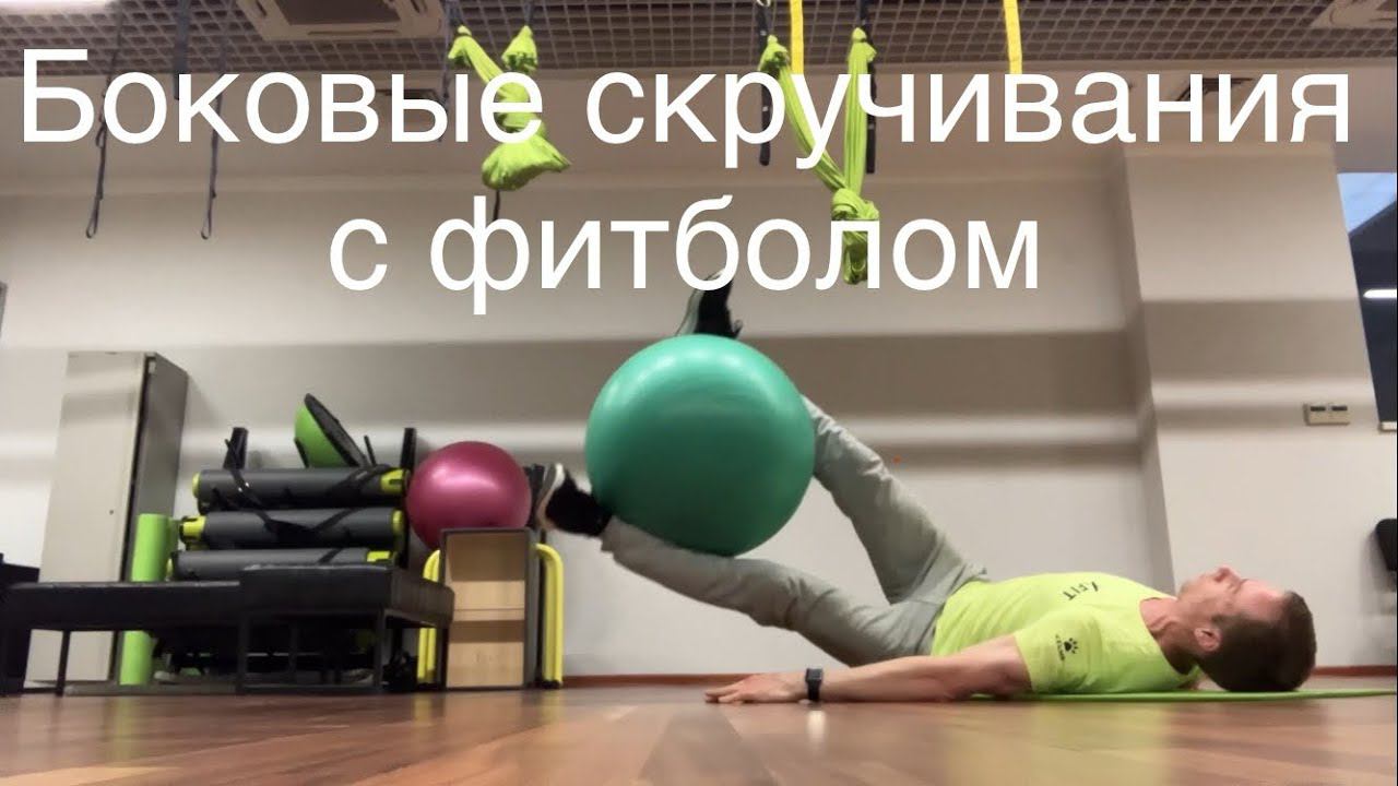 Боковые скручивания лёжа на спине с фитболом между ног (WEIGHTED LYING TWIST)