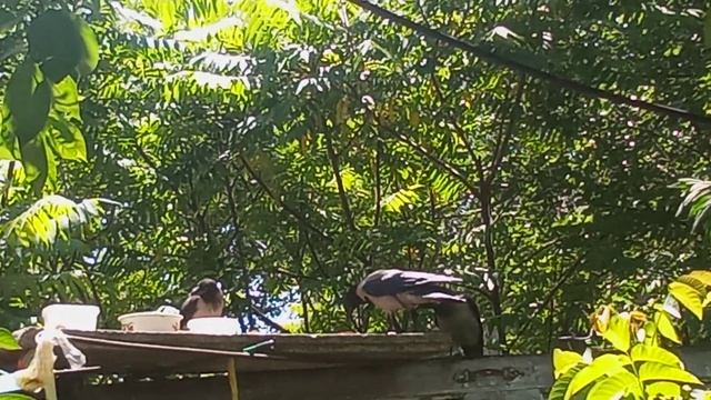 во́рон обучает вороненка самостоятельно есть