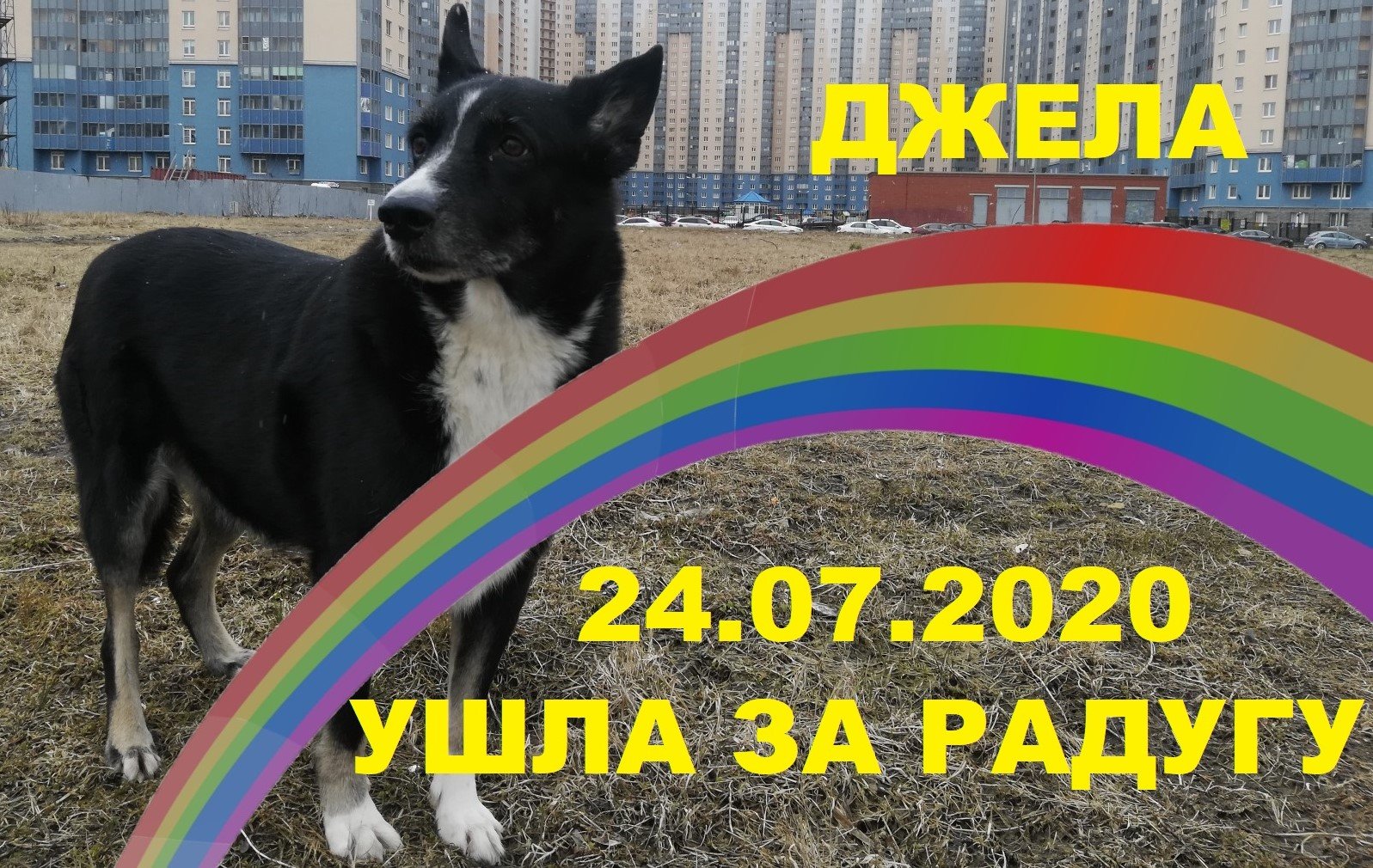 LIVE*RUSSIA: Санкт-Петербург: Плачу, наша собака Джела "ушла за радугу"... Наша собака, полная сил и жизни, сгорела, буквально, за 2 дня... За неделю до этого она сильно исхудала, а живот её разбух на глазах... Тем не менее, она всё еще была весела и счастливо бегала по утрам по парку... Когда она перестала есть, и шевелиться мы повели её в ветклинику, там нам сделали УЗИ многих органов, ЭКГ и рентген, но так и не могли поставить точный диагноз... Подозрение было на инфаркт селезёнки... На утро следующего дня мы кое-как "доковыляли" до клиники (которая находится в 5 минутах ходьбы от дома), сдали клинический анализ крови... К вечеру, Джела перестала пить, и не могла подняться, чтобы встать. Кое-как мы дотащили её до врача, результатов анализа крови все ещё не было, пришлось сделать экспресс-тест. Кровь показала несколько факторов, практически, несовместимых с жизнью... И, так как наша девочка уже лежала в небытии, мы приняли тяжёлое решение не мучать её переливаниями крови и операциями, которые не давали никаких гарантий, и отпустить собаку "за радугу"... Есть такая притча: На самом краю небосклона есть место, называемое Мостом Радуги. Когда животное умирает, особенно если оно было очень любимо кем-то в этой жизни, оно попадает на Мост Радуги. Там бескрайние луга и холмы, по которым наши друзья могут бегать и играть все вместе. Там изобилие пищи, воды и солнечного света, и там нашим любимцам тепло и комфортно. В этом краю все больные и старые животные превращаются в молодых и полных энергии; имевшие травмы и увечья снова становятся здоровыми и сильными. Время для них летит незаметно, если только мы вспоминаем о них в своих мечтах и снах. Животные там счастливы и довольны всем кроме одного - каждый из них ушел раньше и оставил в этой жизни кого-то очень дорогого ему. На Мосту Радуги животные бегают и беззаботно играют все вместе, но приходит день, когда кто-то из них неожиданно останавливается и смотрит вдаль. Его глаза загораются огнем, а тело начинает дрожать от нетерпения. Вдруг он покидает своих собратьев, летит над изумрудно-зелёной травой, и ноги несут его все быстрее и быстрее. Он заметил вас; и когда вы и ваш любимец наконец встретитесь, то крепко-крепко обниметесь, счастливые от того, что соединились и больше никогда не расстанетесь. Он будет, одурев от счастья, лизать ваше лицо, ваша рука снова будет любовно ласкать его голову, и вы еще раз взглянете в преданные глаза своего любимца, так надолго покинувшего вашу жизнь, но никогда не покидавшего вашего сердца. Теперь вы сможете пересечь Мост Радуги вместе...