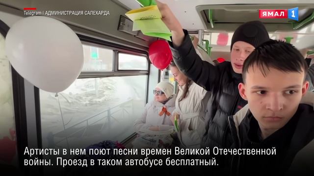 «Поющий» автобус с бесплатным проездом запустили в Салехарде ко Дню Победы