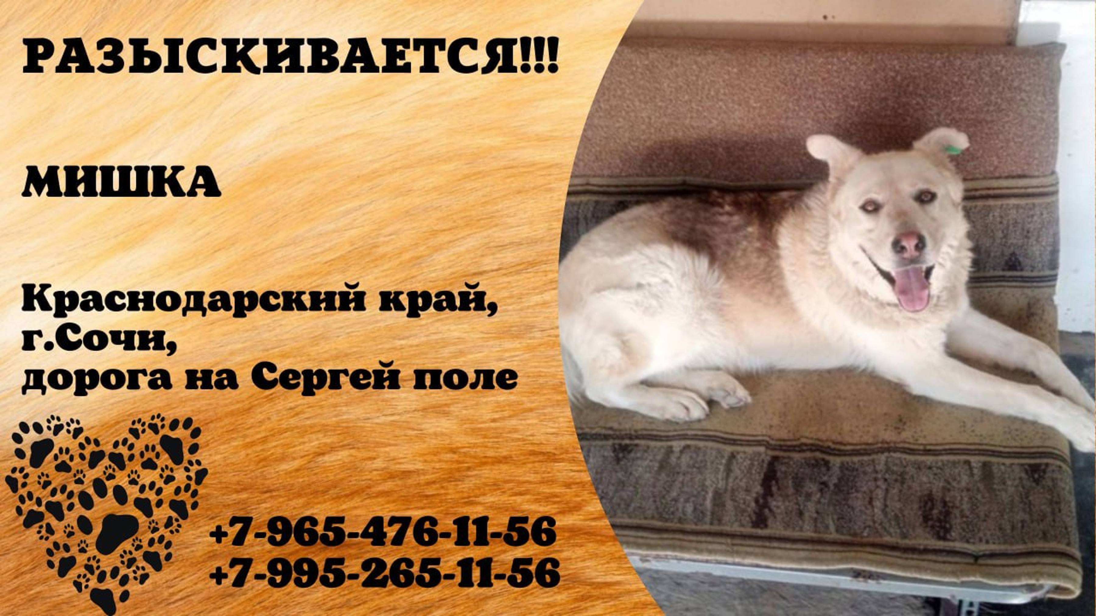 Краснодарский Сочи Пропала собака! 27.12 Сочи потерялся наш Мишка абсолютно без агрессии видели похожего по дороге на Сергей поле за любую информацию щедрое вознаграждение в любое время приедем придержите пожалуйста если увидите 🙏🏻 8-965-476-11-56 Ватцап 8-995-265-11-56 Инфо https://vk.com/wall-198815410_167302 #пропала_собака#Краснодарский#Сочи