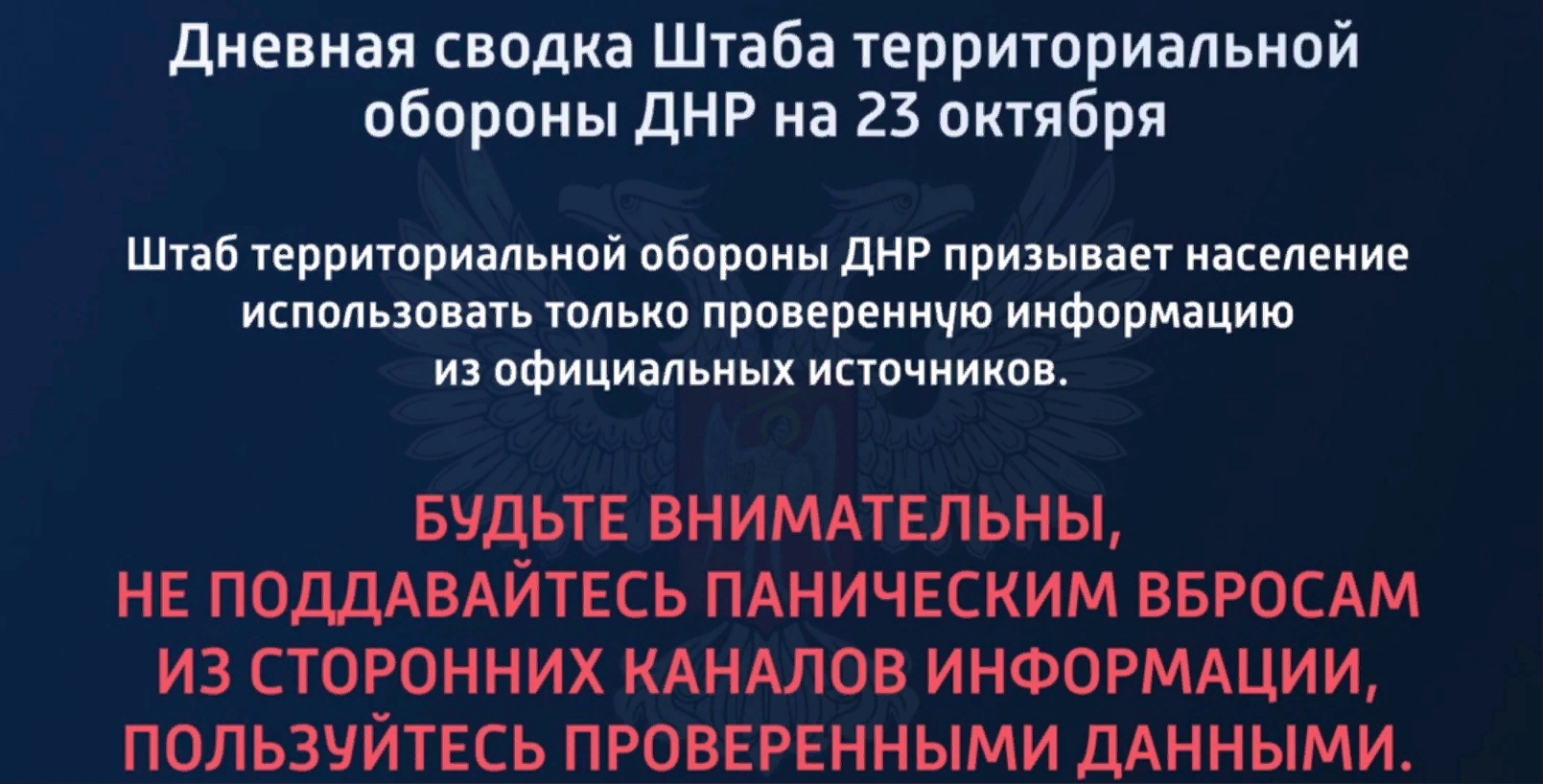 Дневная сводка Штаба территориальной обороны ДНР на 23.10.2022