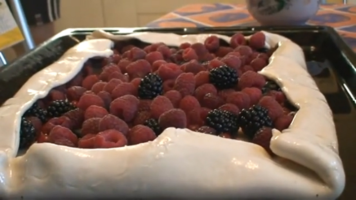 Простенький в приготовлении ягодный пирог, малина, голубика, красная смородина и ежевика и готово!