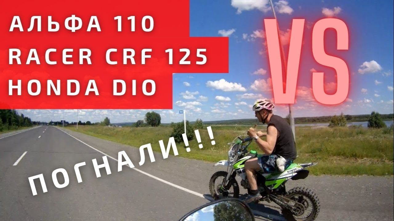 Альфа 110, Питбайк 125 и японский скутер - тест на скорость по трассе