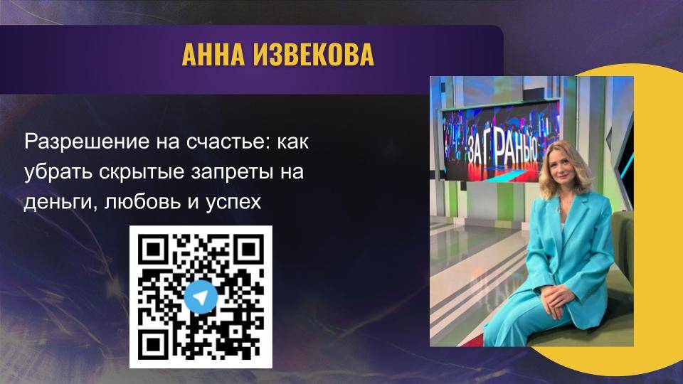 Запись встречи с Анной Извековой на фестивале на тему: «Разрешение на счастье: как убрать скрытые запреты на деньги, любовь и успех»! 💖 🔥 Это было глубоко, честно и мягко-сильно! Мы исследовали, почему духовность без опоры не дает результата, как тень и непринятые качества блокируют желания, и как формируется запрет на деньги, любовь и успех. 🔥 Если вы много знаете, но хотите результата в реальности, устали быть “правильным” и хотите быть живым, выбираете и Дух, и Землю, и силу, то эта встреча была для вас! ✨ Участники встречи смогли: * Почувствовать, как внутри рождается ясная, зрелая фраза: «Мне можно быть счастливой. Мне можно больше. И это безопасно.» 💡 * Сделать практику внутреннего разрешения через тело, эмоции, подсознание и духовный уровень. 💜🔥Всероссийский масштабный фестиваль саморазвития и трансформации ➡️ 10-15 ноября - онлайн ➡️29 ноября - Краснодар ➡️13-14 декабря- Сочи Билеты здесь ⤵️ https://mystery-fest.ru/mysteryfest