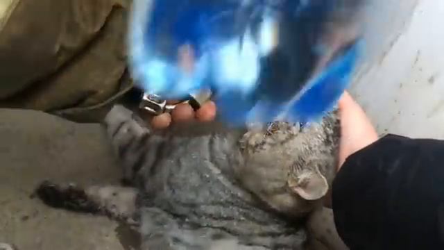 Пожарные откачали кота после тушения пожара в жилом доме