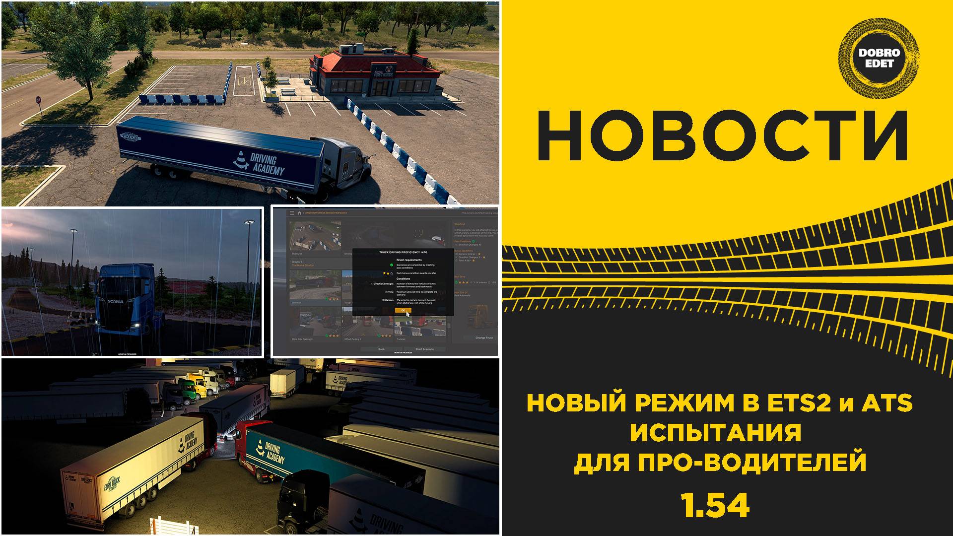 ✅ НОВЫЙ РЕЖИМ В ETS2 и ATS – ИСПЫТАНИЯ ДЛЯ ПРО-ВОДИТЕЛЕЙ 1.54 ✅Подписаться на мой канал● https://goo.gl/pFdnLk ====================================================== В этом видео мы расскажем о новом режиме Truck Driving Proficiency в Driving Academy, который был анонсирован в игре Euro Truck Simulator 2 от SCS Software! Если ты фанат симуляторов и хочешь улучшить свои водительские навыки, этот режим точно тебе подойдёт! Мы расскажем, как будет работать система оценок, какие уникальные награды ждут тебя за выполнение сложных сценариев и как стать настоящим мастером вождения! Источник SCS Software Blog https://blog.scssoft.com/2025/03/driving-academy-truck-driving.html ====================================================== ✅По вопросам РЕКЛАМЫ - https://vk.com/topic-151331808_35890784 Это Видео - https://youtu.be/tFxdddnyRl8 ●✅Группа ВК -https://goo.gl/8TZaGy (МОДЫ ETS2,FS17) ●✅Я в ВК -https://vk.com/dobrovolskiy36 ●✅Наш дискорд https://discord.com/invite/8wZnqTUY49 ●✅Телеграм https://t.me/dobroYT ●✅RUTUBE https://rutube.ru/channel/22815033/ ●✅ДЗЕН https://dzen.ru/dobroedetofficial #EuroTruckSimulator2 #AmericanTruckSimulator #ets2 #DrivingAcademy #TruckSimulator #SCSSoftware #ats #TruckDriving #TruckGame #SimulationGames #TruckDriver #BigRig #18Wheeler #HardParking #EuroTruckSimulator2 #Mods #TruckPhysics #RealTruckDriving #VirtualTrucker #ConvoyMode #TruckGameplay #dobroedet