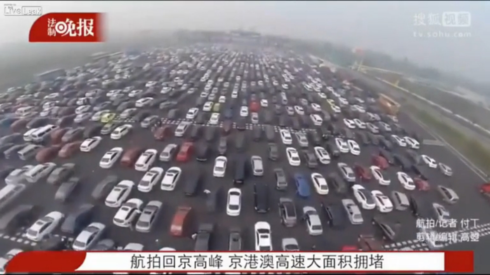 Китай. 50-полосная пробка (06.10.2015 г.)