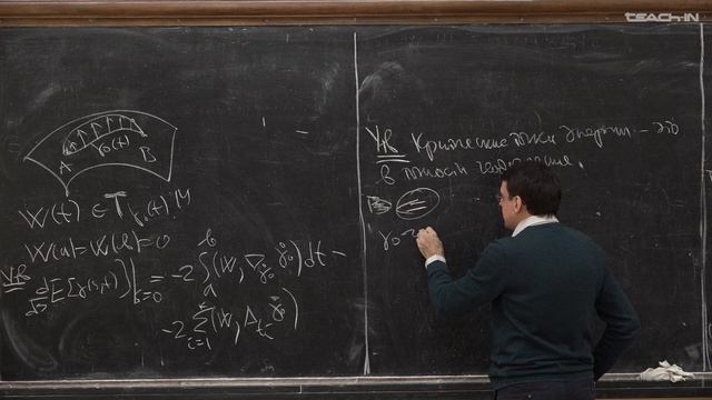 Первая вариация функционала энергии. Критические точки функционала энергии. Уравнение Якоби Пенской Алексей Викторович 00:17 Пространство кусочно-гладких кривых. Кусочно-гладкая вариация 08:51 Первая вариация функционала энергии 34:27 Поля вариаций: некоторые замечания 40:11 Утверждение (критические точки функционала энергии - это в точности геодезические) 52:52 Двухпараметрическая вариация. Гессиан 01:12:00 Уравнение Якоби. Поля Якоби Ссылка на плейлист Teach-In: https://teach-in.ru/course/minimal-submanifolds-and-harmonic-maps-penskoy Ссылка на плейлист YouTube: https://www.youtube.com/playlist?list=PLcsjsqLLSfNCYPz9Momd-Pqfpx07hzBUa Ссылка на плейлист VK: https://vkvideo.ru/playlist/-176441665_868 Ссылка на плейлист RuTube: https://rutube.ru/plst/1513665