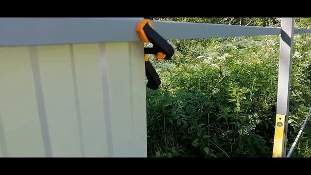 Как одному прикрутить профильный лист к металлическим лагам забора
