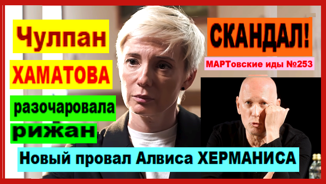 СКАНДАЛ! Чулпан ХАМАТОВА разочаровала рижан. Новый провал Алвиса ХЕРМАНИСА. Речь идёт о народной артистке России, которая уехала в Латвию. Сейчас она играет на сцене Нового Рижского театра Алвиса Херманиса. Однако местные театралы резко критикуют постановки с участием актрисы. Такова тема сегодняшнего выпуска новостей в рамках постоянной рубрики «МАРТовские иды №253». См. Видео. Ждём комментарии!