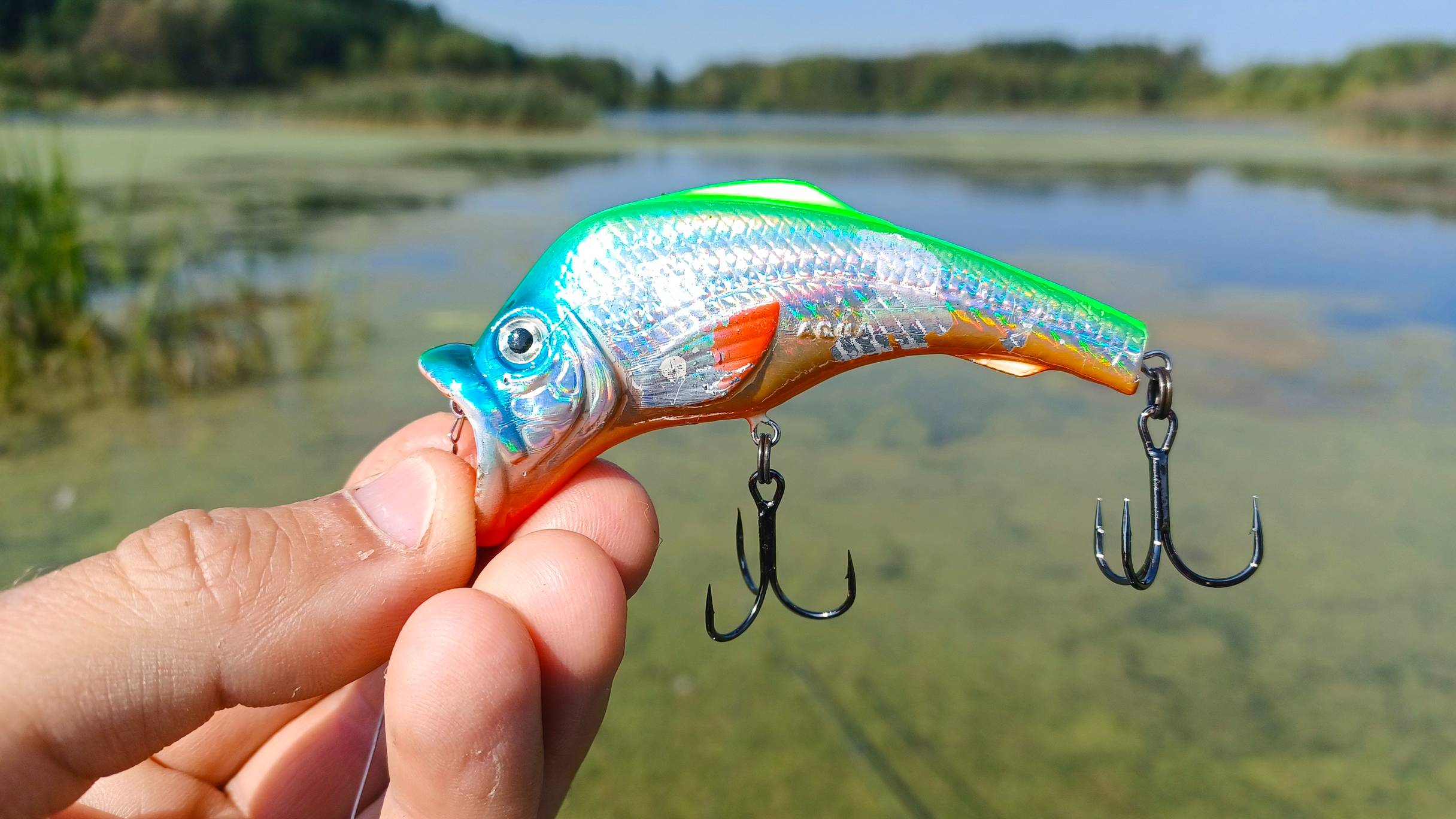 На этой рыбалке на спиннинг в сентябре, я решил посетить одно заросшее болото, на котором по слухам была щука. Приманки для этой местности я выбрал поверхностные, а именно попер, слайдер и поверхностные воблера. Как оказалось ловля рыбы была очень азартна и интересна, щука радовала своими поклёвками на виду.