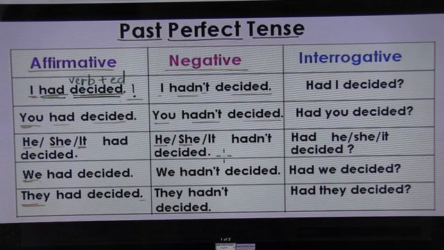 Past perfect tense: Affirmative, Negative and Interrogative