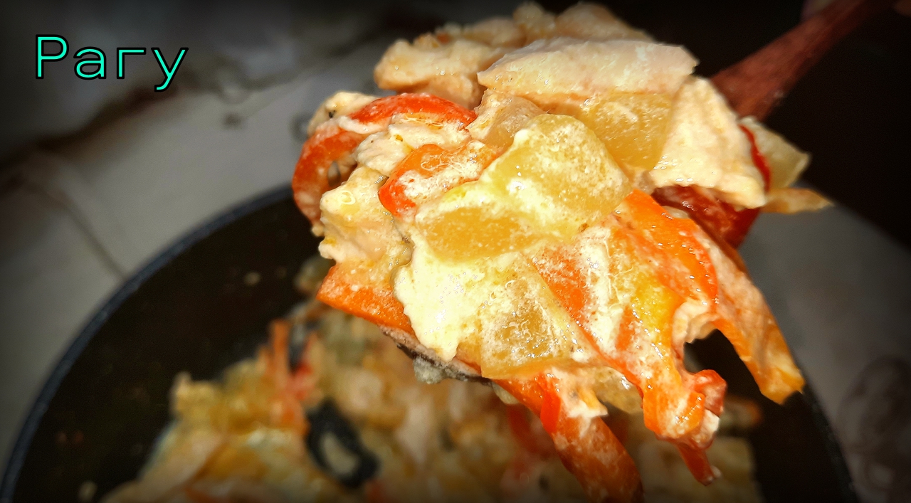 Рагу с курицей, кабачками и сметаной.