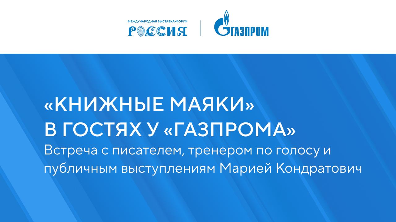 "Почему так важно сегодня красиво и доходчиво говорить? Ответ даст тренер по голосу, речи и публичным выступлениям Мария Кондратович. «Книжные маяки в гостях у «Газпрома» приглашают на встречу с тренером по голосу, речи и публичным выступлениям, автором книги «Говори, я хочу еще!» Марией Кондратович. Умение презентовать себя влияет на все стороны жизни. То, как мы умеем рассказывать о себе, доносить мысли, коммуницировать с семьей, коллегами, делает нас не только успешнее, но и счастливее. Как грамотные речевые навыки помогают достичь успеха, на чем надо сделать акцент в их развитии?"
