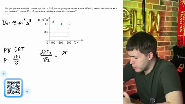 На рисунке приведён график процесса 1–2, в котором участвует аргон. Объём, занимаемый газом - №37431