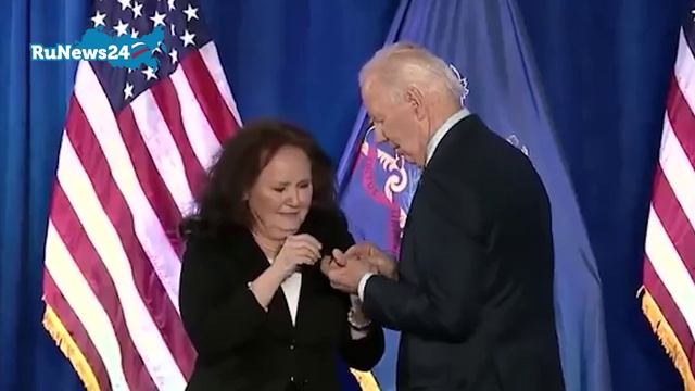 Байден уронил и облизнул медаль на церемонии вручения наград