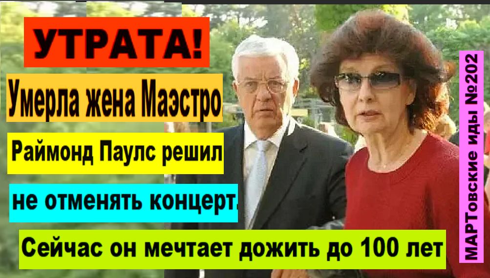 "УТРАТА! Умерла жена Маэстро Раймонд Паулс дал концерт. Сейчас он мечтает дожить до 100 лет!" Вчера, 4 августа, на 85-м году жизни умерла Светлана Паулс (в девичестве - Епифанова) - русская супруга знаменитого латышского композитора Раймонда Валдемаровича Паулса, народного артиста СССР. Они познакомились в Одессе в 1959 года, когда Маэстро приезжал вместе с Рижским эстрадным оркестром выступать на черноморском курорте. Светлана по образованию лингвист; она тогда работала в самом известном советском туристическом агентстве «Интурист». Для прибалтийского композитора одесситка стала единственной любовью на всю жизнь. Жена помогла ему избавиться от вредных привычек. Они были вместе свыше шестидесяти лет. Выражаем сочувствие! Такова тема сегодняшнего выпуска новостей в рамках постоянной рубрики "МАРТовские иды №202". См. видео! Ждём комментарии!