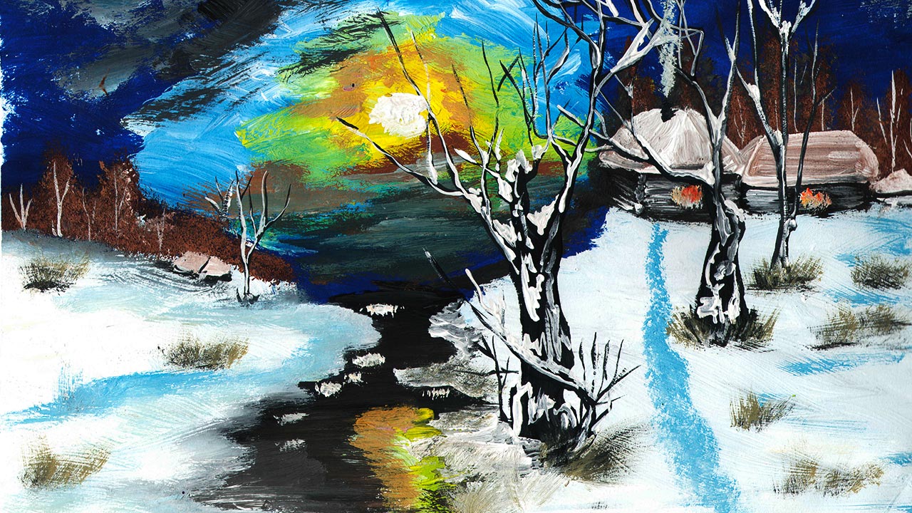 Как нарисовать зимний пейзаж легко. Как нарисовать зиму в деревне. Правополушарное рисование.