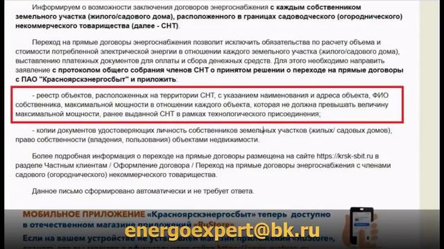 Странное письмо садоводам от Красноярского энергосбыта