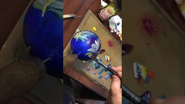 Расписываем новогодний шарик на елку в технике кемеровской росписи