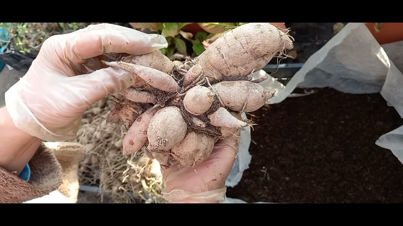 Клубни георгин готовлю к зимнему хранению.