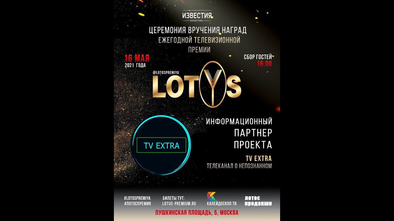 16 мая 2021 года в концертном зале «Известия Banket Hall» на Пушкинской площади состоится V торжественная церемония вручения наград победителям Ежегодной Международной телевизионной премии «Лотос» – крупнейшей уникальной премии в сфере психологии, бизнеса и сверхспособностей человека. Учредители самого ожидаемого светского торжества ставят своей задачей выделить лучших экспертов и сильнейших мастеров в своей области. Победители будут выбраны с помощью открытого, а на последнем этапе закрытого, народного онлайн голосования, и станут известны только на самой церемонии в торжественной обстановке. За процессом рассмотрения заявок и подсчетом голосов следит экспертный совет. Премия Лотос присуждается с 2016 года. За это время лауреатами Премии стали более 100 лучших специалистов и компаний. Торжественная церемония вручения премии «Лотос» – это динамичное мультимедийное событие, а также яркое, интересное необычное мероприятие, где помимо самого награждения Лауреатов, под объективами телекамер, гостям будет предложена насыщенная развлекательная программа с участием звёзд эстрады. Ежегодно это мероприятие посещают сотни людей, профессионалы в области бизнеса, психологии и эзотерики, известные медийные персоны, представители шоу-бизнеса, звезды Российской эстрады, деятели искусства, кино, общественные и политические деятели, участники мистических и развлекательных телепроектов каналов: ТВ3, ТНТ, РЕН ТВ, Домашний, Первый канал, Мир и др. Среди гостей ожидаются: Гия Гагуа – народный артист России, основатель шоу-группы «ЭКС ББ»; легендарная группа «Воровайки»; Саша Project – певица; Родион Газманов – российский эстрадный певец, актер и телеведущий; Ольга Спиркина – актриса, телеведущая, художественный руководитель Школы телевидения Останкино Ольги Спиркиной; Дмитрий Нестеров — певец, автор песен, победитель конкурса Аллы Пугачевой «Алла ищет таланты»; Анжелика Кузьмова – певица, финалистка шоу «Большая перемена» на НТВ, участница шоу «Голос 4» на Первом канале, участница международного шоу «Ну-ка, все вместе!»; Павел Соколов – экс-солист группы «На-На»; певец Данко; Андрей Якиманский – автор, композитор, певец; шоу-группа ВИГЕН; инструментальный коллектив — дуэт аккордеонисток «Ларго»; трио «Фавориты»; эстрадная студия «Новые Звезды» из города Чехова и др. При информационной поддержке канала "ТВ Экстра" Приобрести билеты можно на официальном сайте премии: www.lotus-premium.ru. Количество мест ограничено.