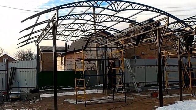 Навесы в Ростове от компании ...Мир Навесов... Монтаж сложного навеса.