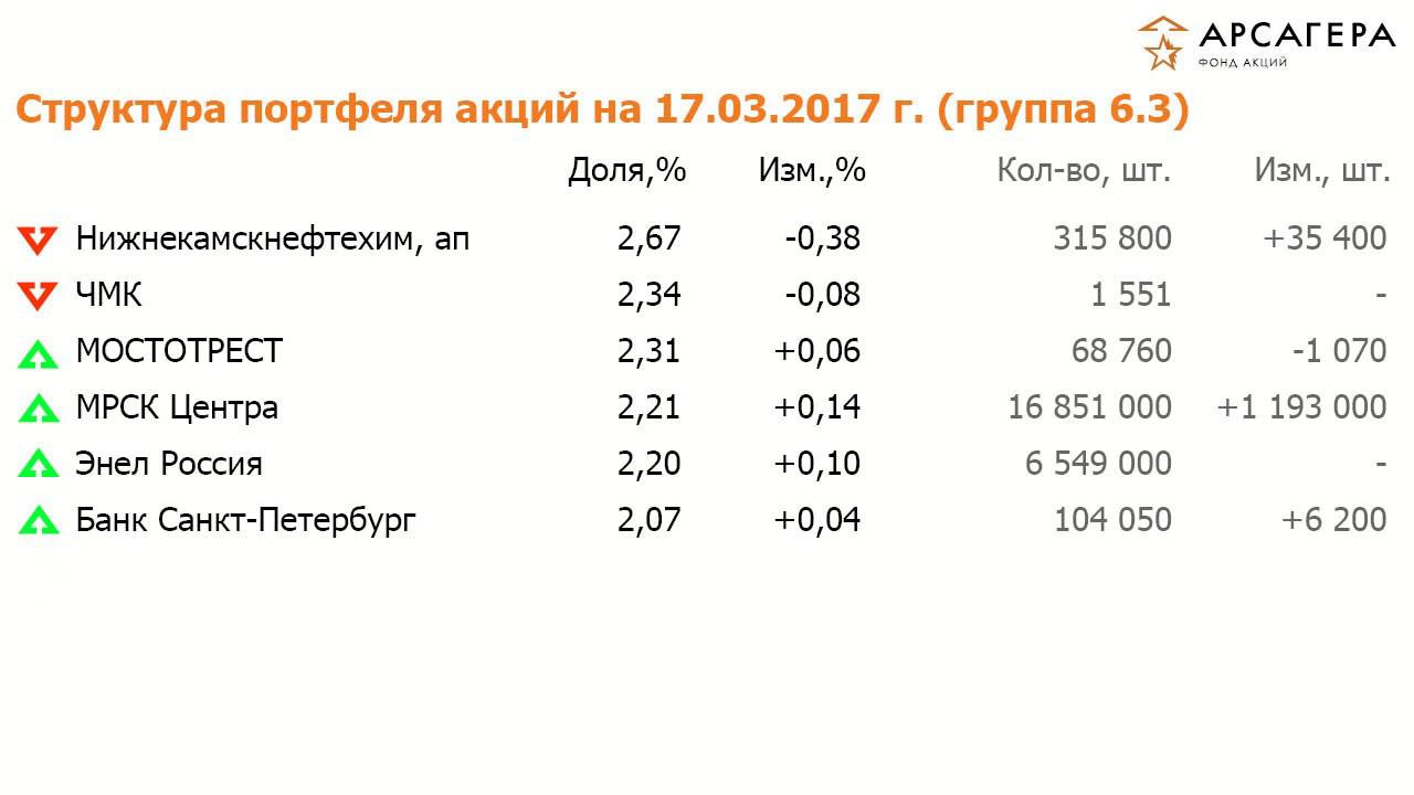 ОПИФА «Арсагера - фонд акций» с 03.03.17 по 17.03.17