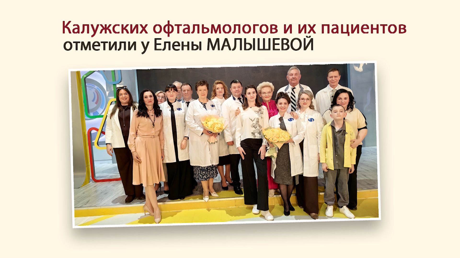 Выдающиеся достижения калужских офтальмологов МНТК имени Фёдорова в здоровье глаз детей добрались до аудитории 1 федерального телеканала. Главный популяризатор успехов отечественной медицины профессор Елена Малышева пригласила родоначальников российской системы оказания офтальмологической помощи младенцам при ретинопатии недоношенных для съемок в студиях народнолюбимых передач «Жить здорово!» и «Здоровье с Еленой Малышевой».