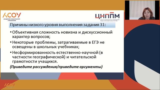 Вебинар по географии "Выполнение и система оценивания задания 31 в ЕГЭ по географии"